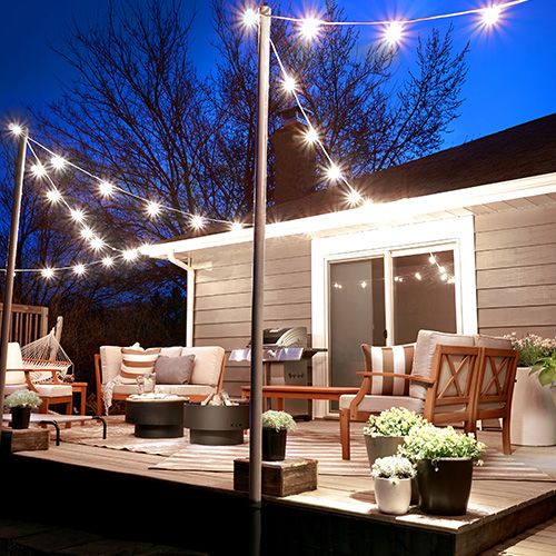 Peu importe votre aménagement extérieur actuel, il est possible d’installer vos lumières grâce à des outils de suspensions disponibles sur Amazon. Voici quelques trouvailles :