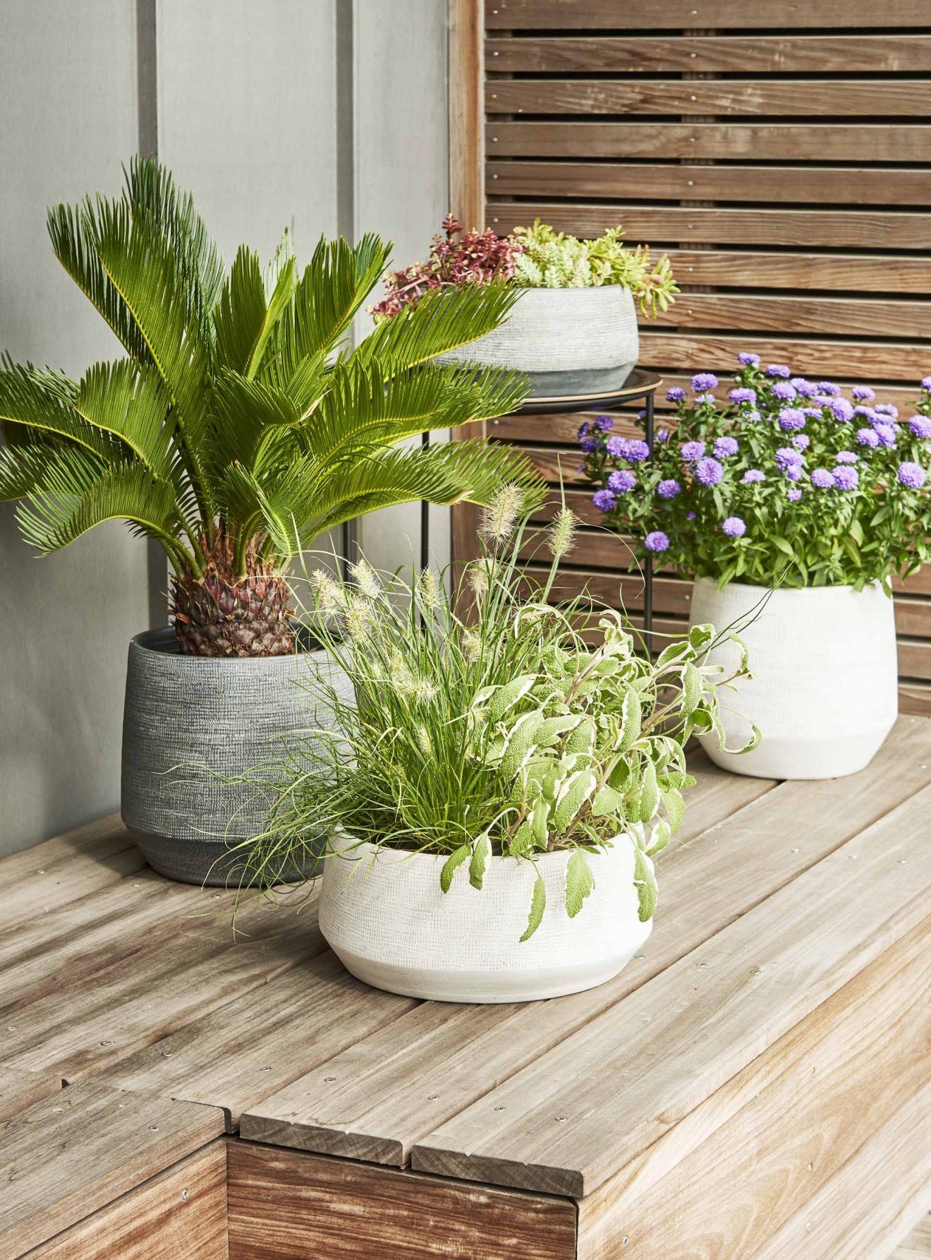 La tendance végétale se transporte évidemment très bien l’extérieur de la maison. Allez faire un tour à la pépinière près de chez vous et vous ferez assurément de belles trouvailles. Que vous ayez le pouce vert, ou pas, ne soyez sans crainte! Il existe des plantes tropicales parfaites pour l’été qui sont extrêmement faciles à entretenir. Les conseillers sur place pourront vous expliquer toutes les nécessités que vos plantes ont besoin tels que la fréquence d’arrosage et les heures d’ensoleillement. De plus, les herbes, telles que le basilic, la coriandre et la menthe sont agréables au nez et utiles pour vos mets et cocktails rafraichissants d’été. Elles apportent également de la couleur et une certaine fraîcheur à votre espace extérieur. Voici quelques inspirations pour bien aménager vos herbes pour la saison d’été.